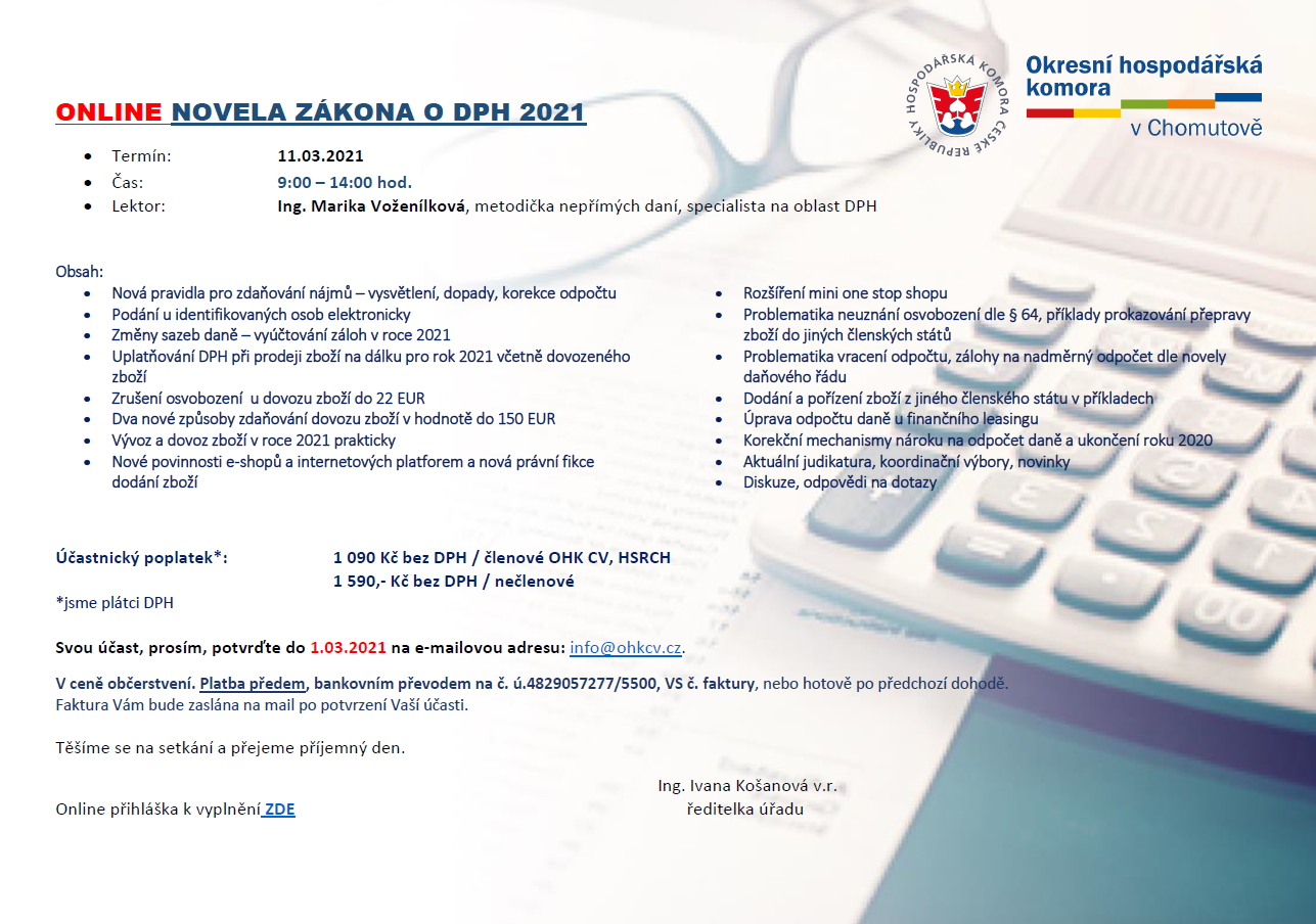 Úvod > Služby > Aktuality > Novela zákona o DPH 2021 - Online seminář